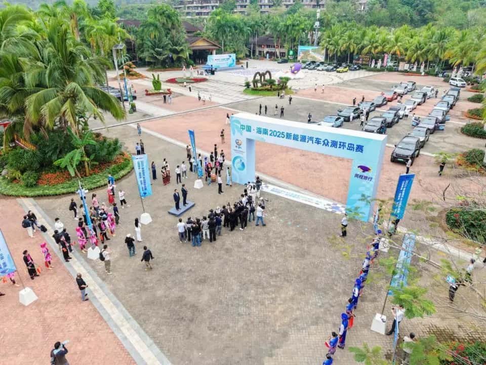 4月12日上午,第五届中国国际消费品博览会特色配套活动“中国·海南2025新能源汽车众测环岛赛”在保亭呀诺达热带雨林景区举办发车仪式。